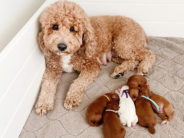 Each of our dogs have been genetic tested through Embark as well as breed appropriate OFA testing, which is normally hips, cardiac, eyes, and sometimes patellar and elbows. Any stud dog we use has been fully health tested as well. Each dog in our program is primarily a family pet and will never be overbred. They receive regular veterinarian care, are fed a high quality diet, and are very well groomed.